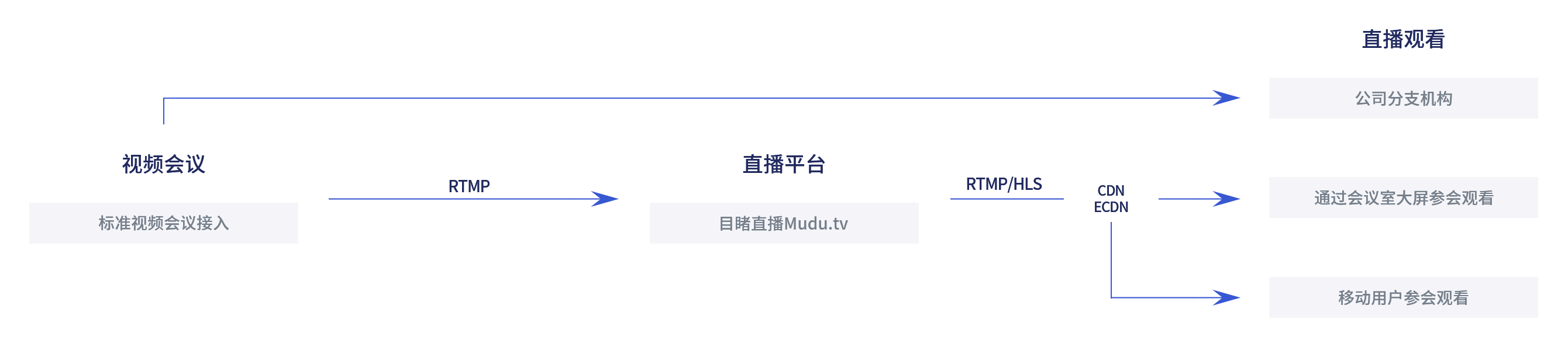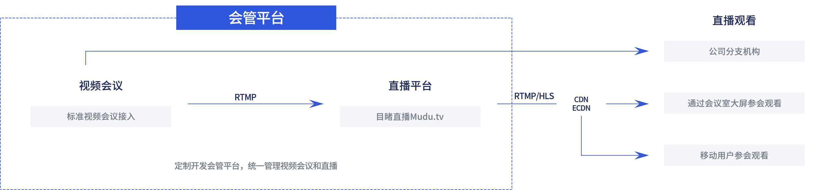 内外网会议分离: 通过公网CDN,内网ECDN组件,使内外网直播隔离,根据实际业务场景切换会议类型;